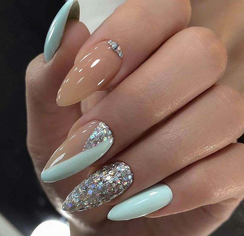 Яркий трендовый дизайн маникюра весны 2023 года можно создать и с помощью страз и камифубуки, которые могут адаптировать его под любое настроение и стиль. Вам предстоит пойти на торжество? Эффект битого стекла из ромбиков, романтичные сердечки и кружочки, напоминающие вечерние огни города — камифубуки есть во множестве вариаций. Смело используйте! Пайетки и стразы придутся очень кстати, если хотите добавить изысканности вечернему образу.