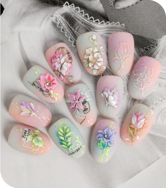 Каждому виду дизайна в курсе посвящен отдельный урок. Сначала короткая теория и обзор инструментов, далее наглядная практическая часть. Вы узнаете обо всех нюансах выполнения дизайна и сможете сразу повторить технику на модели или типсе.
