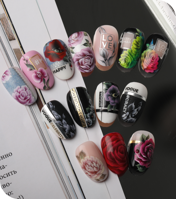 Каждому виду декорирования в курсе посвящен отдельный урок. Сначала короткая теория и обзор инструментов, далее наглядная практическая часть. Вы узнаете обо всех нюансах выполнения дизайна и сможете сразу повторить технику на модели или типсе.
